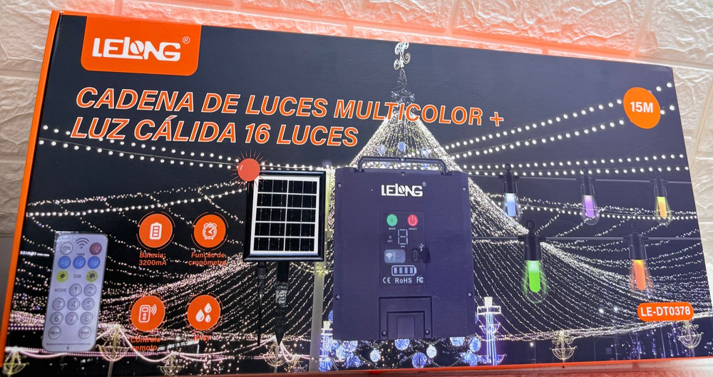 GUIRNALDA LED - CADENA DE LUCES MULTICOLOR + LUZ CALIDA 16 LUCES - LELONG - LE-DT0378