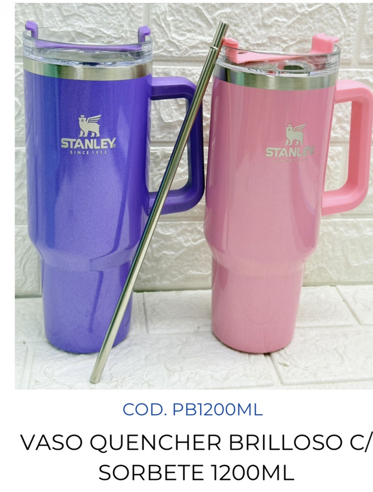 VASO QUENCHER PERLADO BRILLOSO "STANLEY" 1200ML C/ SORBETE METALICO - MORLAN - VQPB1200ML